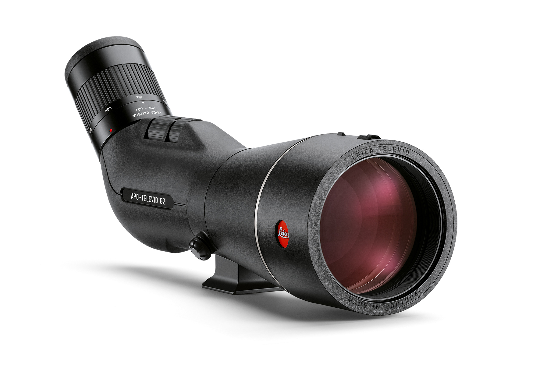 Il telescopio Leica Apo Televid 82, con oculare 25-50 supergrandangolare, moltiplicatore 1.8x e custodia protettiva
