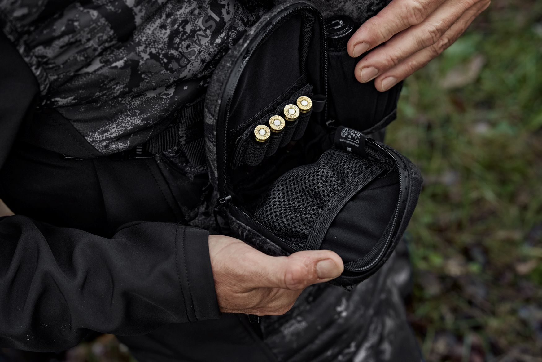 Questo accessorio completa il portabinocolo Härkila, con ritrovati geniali e decisamente utili al cacciatore. Disponibile in verde o camo oppure Noctyx (Novità 2026!) e realizzato in tessuto ultra silenzioso, è perfetta per riporre oggetti essenziali come munizioni, documenti o un power bank. La doppia cerniera idrorepellente facilita l’apertura e mantiene asciutto ciò che sta all’interno, dove c’è anche una tasca in rete. Il portacartucce rimuovibile da 4 in dotazione può essere fissato con velcro sia all’interno che all’esterno, sotto la copertura pieghevole dotata di chiusure magnetiche silenziose che proteggono le cartucce stesse. Gli stick MOLLE consentono l’aggancio modulare sicuro e rapido al portabinocolo.
