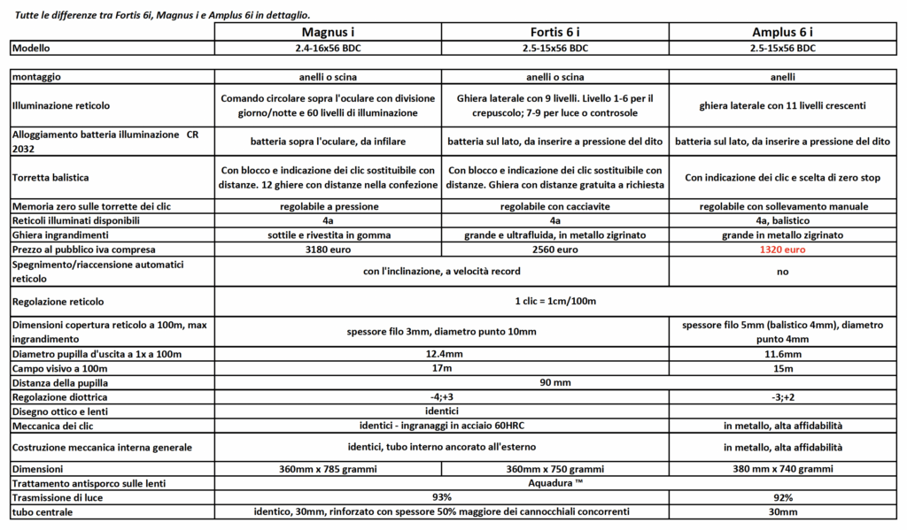 Magnus e Fortis sono oggi per qualità ottiche e meccaniche complessive probabilmente il massimo che si possa desiderare per la caccia di selezione. Amplus, senza rinunciare a nulla di fondamentale, ha un prezzo che lo rende estremamente attraente.