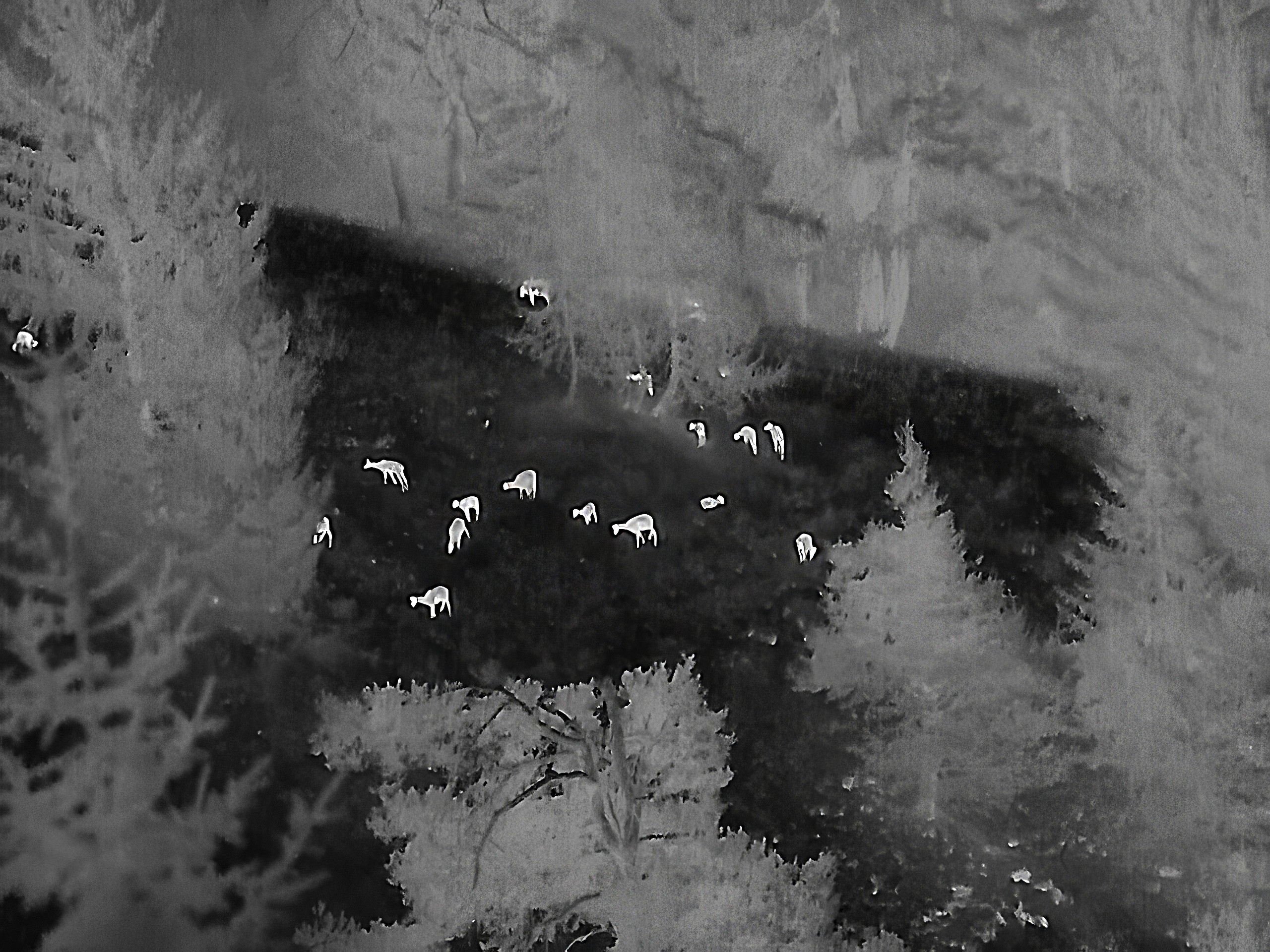 Il sensore termico Lynred francese, di cui il Calonox 2 monta la versione più performante ed avanzata, ha notoriamente la caratteristica di far emergere molto chiaramente l’animale rispetto agli altri elementi dell’ambiente. Osservando attraverso il Calonox 2 si vede subito la brillantezza e la forza del contrasto che caratterizza l’animale, che spicca in modo imbattibile- letteralmente come una lampadina accesa – su qualsiasi ambiente circostante, neve compresa, e anche quando è già sorto il sole. La foto a fianco mostra due caprioli a circa 1200 metri, si capisce chiaramente dal contrasto tra le zone d’ombra e le zone chiare che sono al sole.